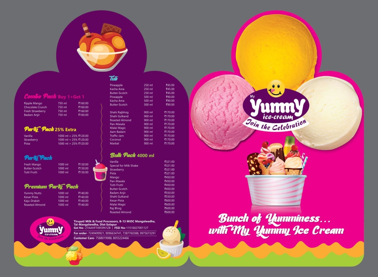 Since 2013 Tirupati Milk & Food Processors Pvt. Ltd. Offered wide range of ice creams with delicious taste. We make quality product with advance machinery & industry expert. Yummy Ice Cream is well-known product in western Maharashtra and Karnataka. We developed real flavour’s in ice cream like Gulkand, Mango and much more. We believe in quality and always deliver it.
